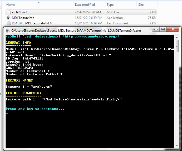 A small program for finding out the correct materials and the address that a model will use. See the readme in the download for how to use... I just use it from the desktop and drop a mdl file on the MDLTextureInfo application file and a window opens up...