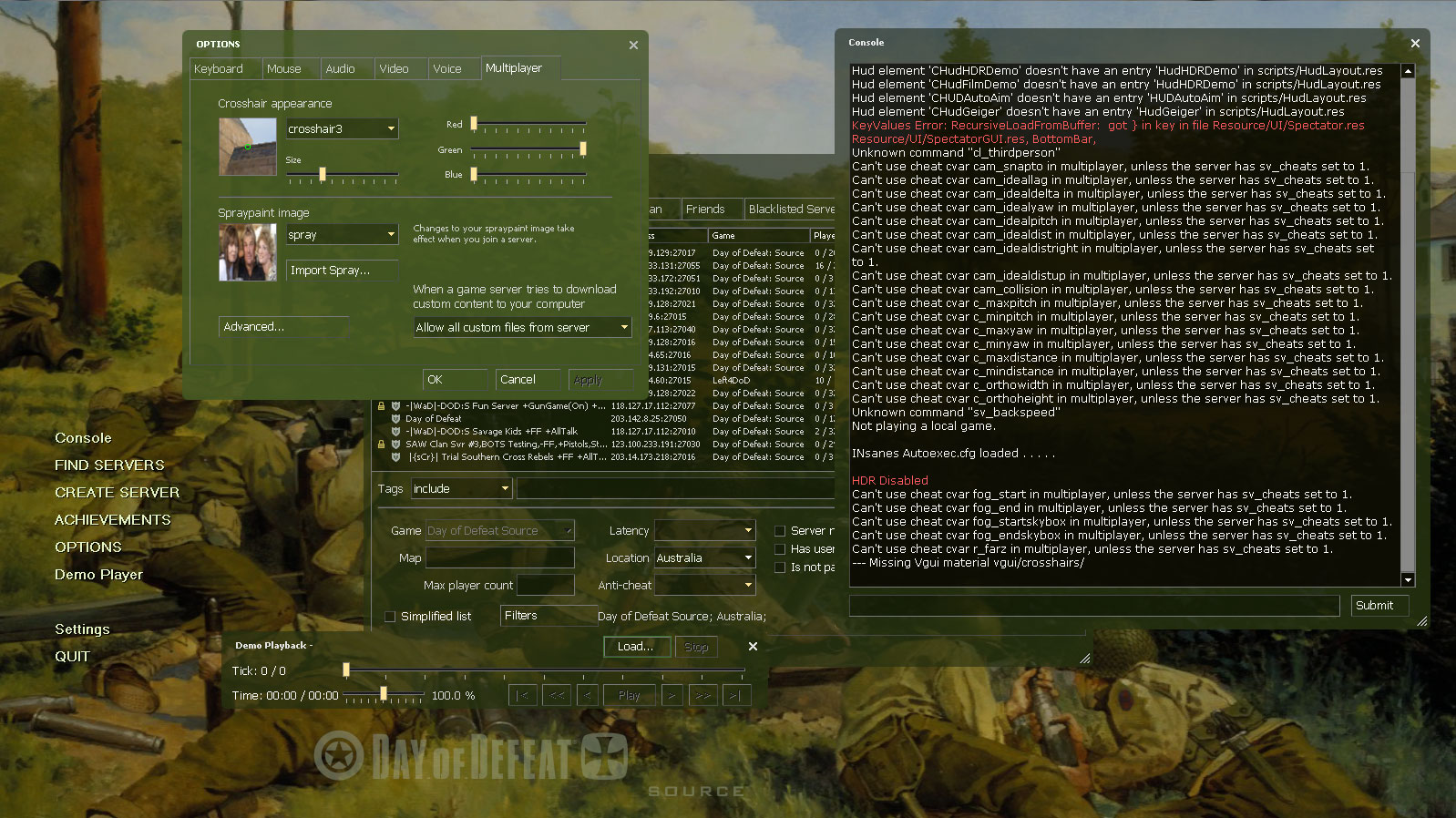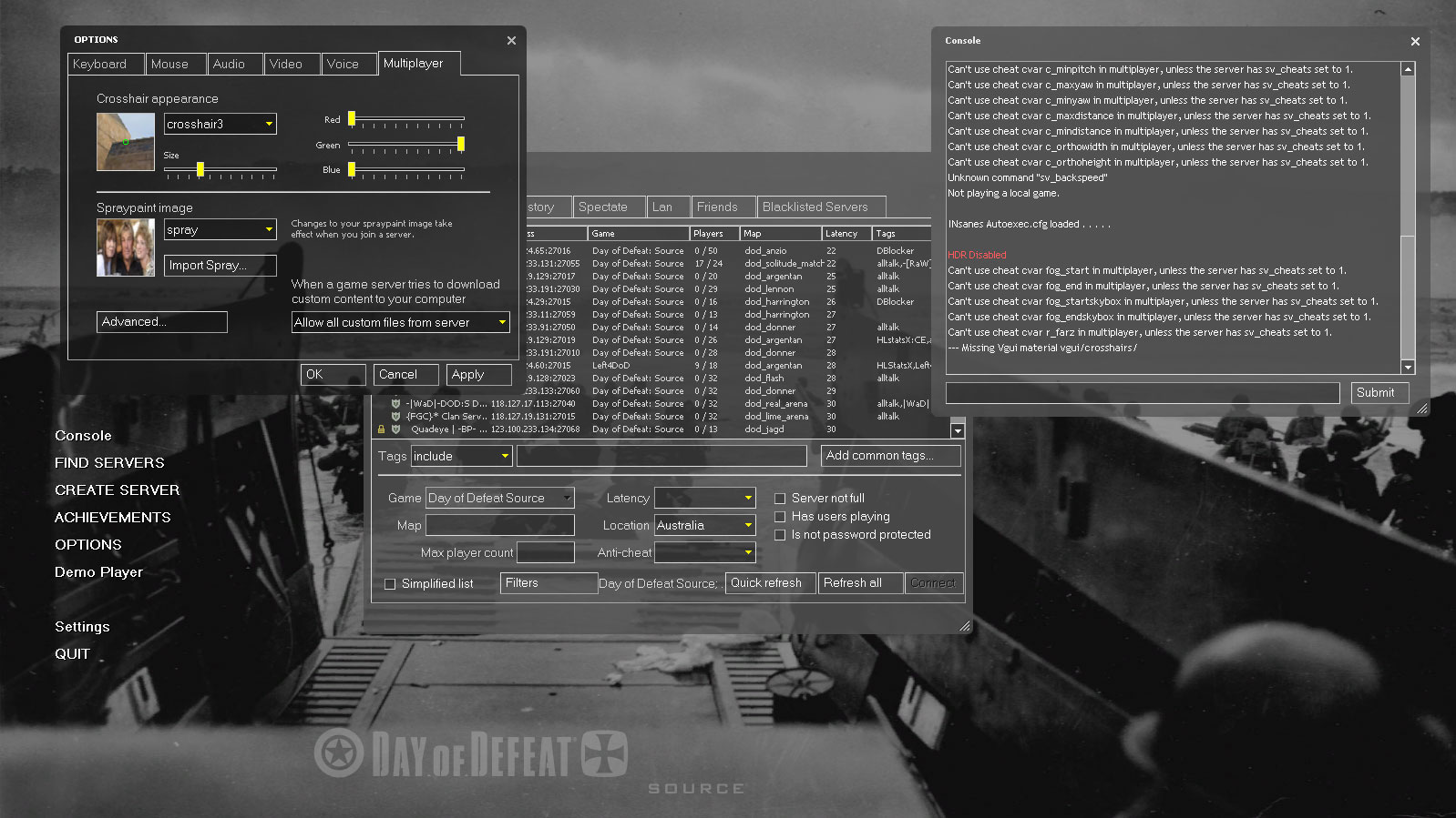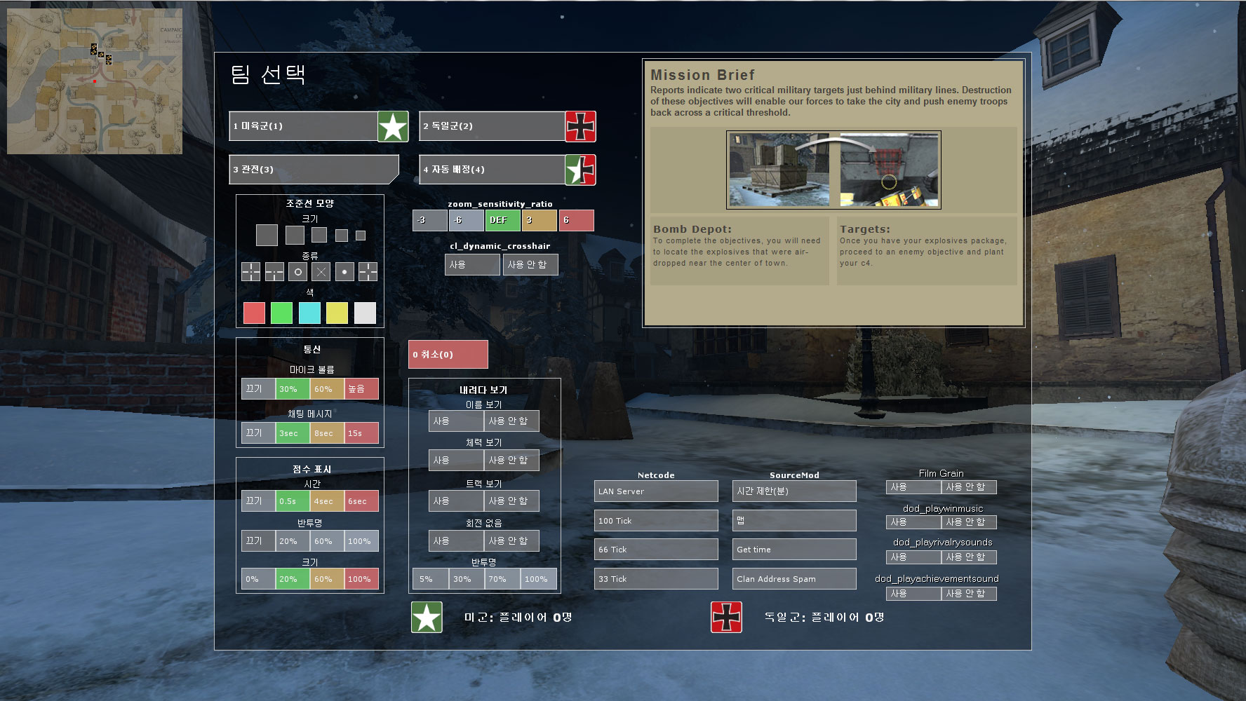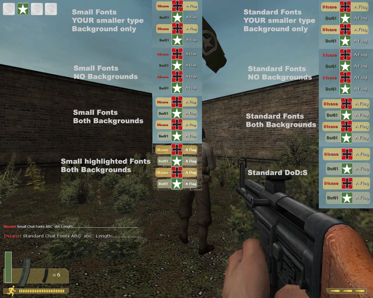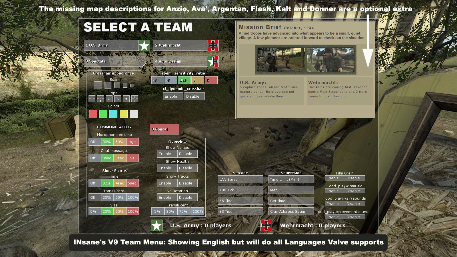 3. The normal HUD extras like small icons that revert back to normal if a sv_server blocks the material folder. These include a server ad position fix, some map descriptions that VALVe did not do, a scoreboard page background, a spec menu with Netgraph control and some custom x hairs.