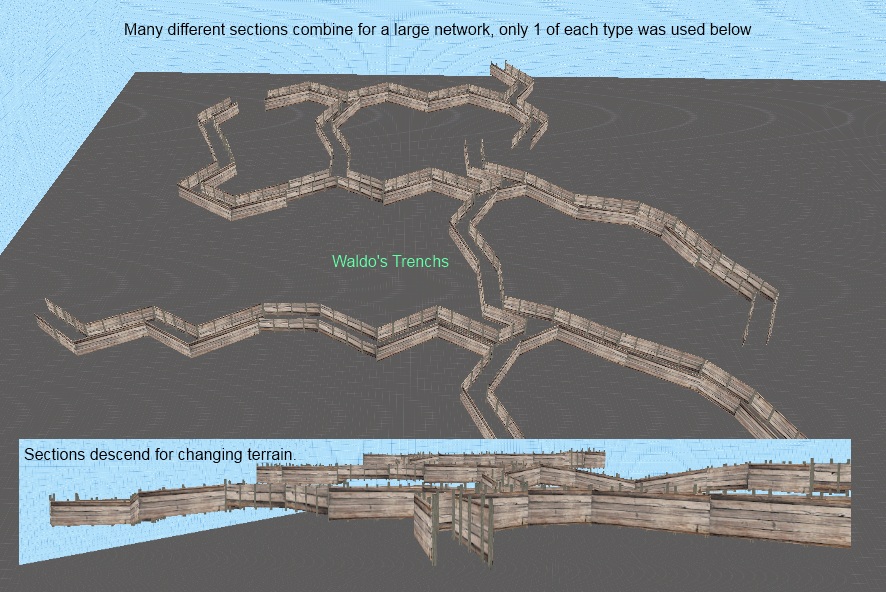 The trenches include both various L, T and X patterns and also include some sections that descend for changing terrain.