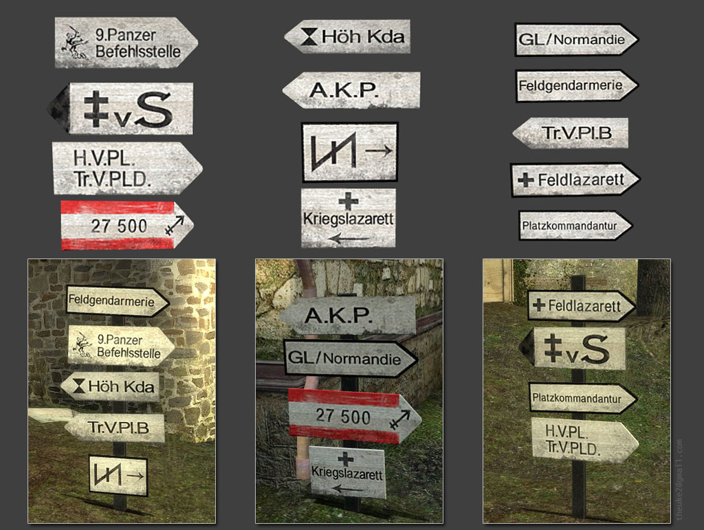 All models call to a unique 512*512 texture (no normal map). They break into the Valve default wooden sign gibs.