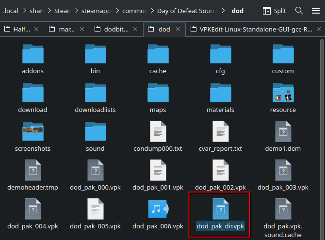 | A common dod game folder | The folder and file structure in the .vpk file... same! |