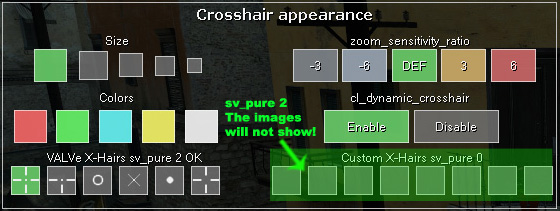 Custom X-Hairs sv_pure 0... cl_crosshair_file (from left to right)