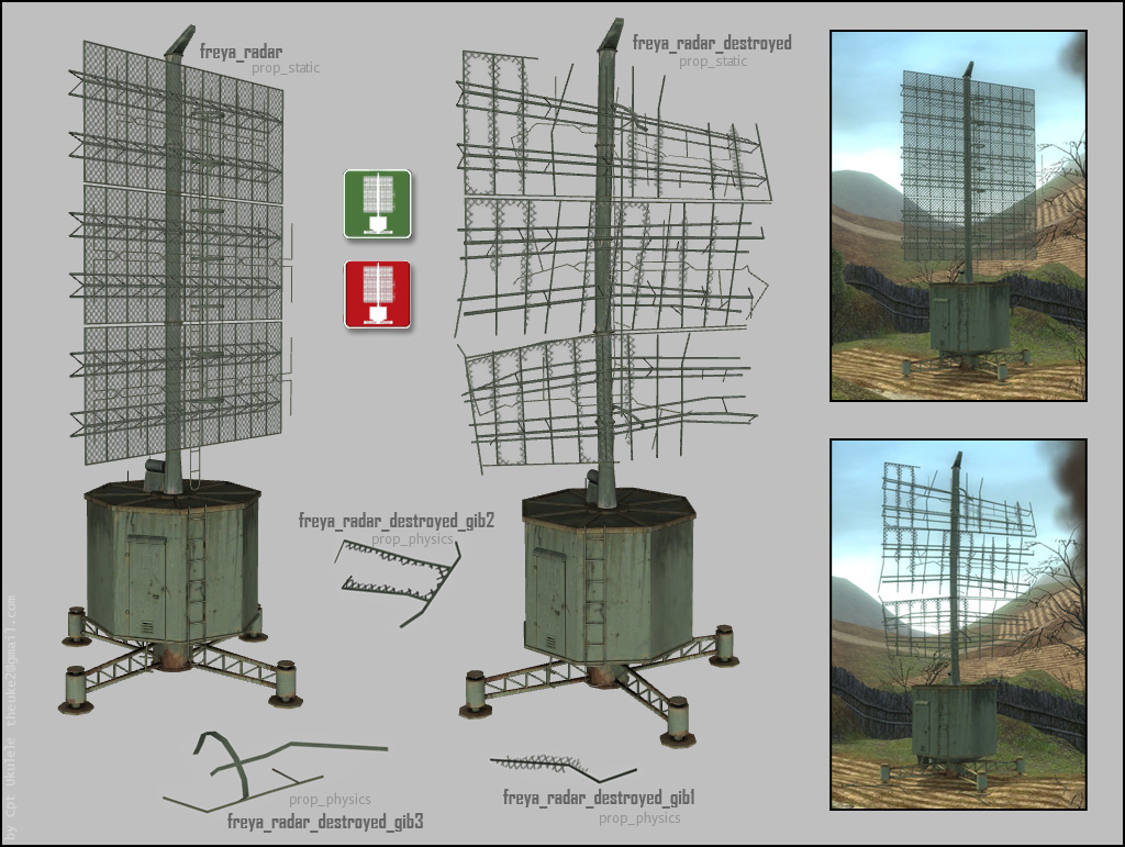 The models use one 1024*1024 and two 512*512 textures. Also included are objective icons depicting the radar.