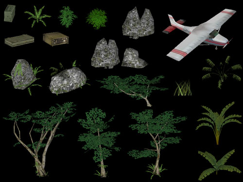 Jungle Foliage by Shiroko includes mostly foliage but also has a radio, a small plane (not much use for dods) ammo boxes and a mattress model.