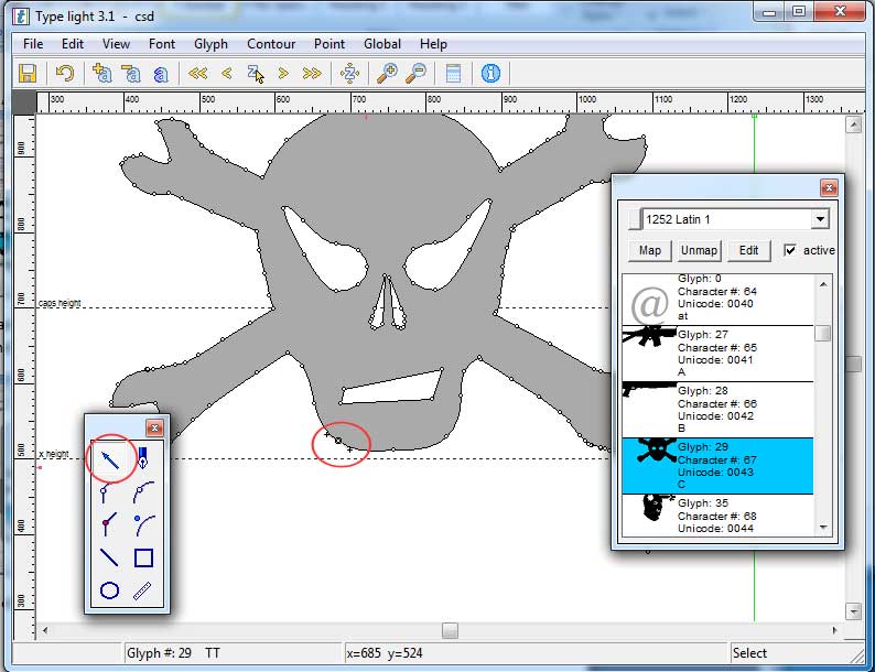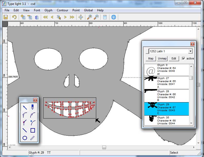 There is another option I can now recommend, Type light 3.1 - a freeware OpenType font editor. It has basic abilities to open, basic editing and save .ttf files. The full version has many more functions and you may opt for that, it does do a lot more like import bitmap images and a host of other tools, however it is possible to change a HL2 TTF file with ease under Windows using the free or full version. Install it or your other choice and let's continue.