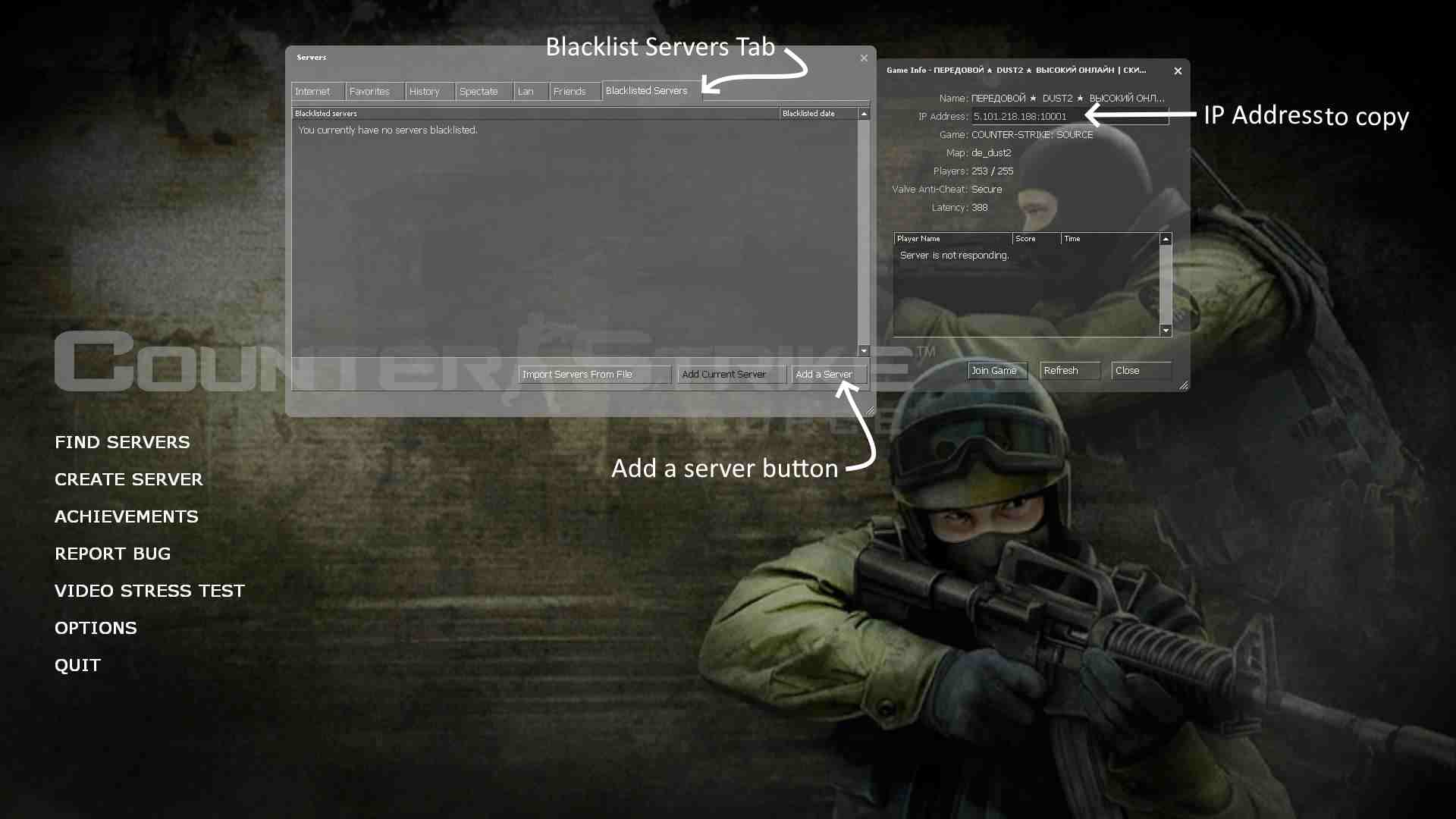 A section of technical items on blocking CS:S servers