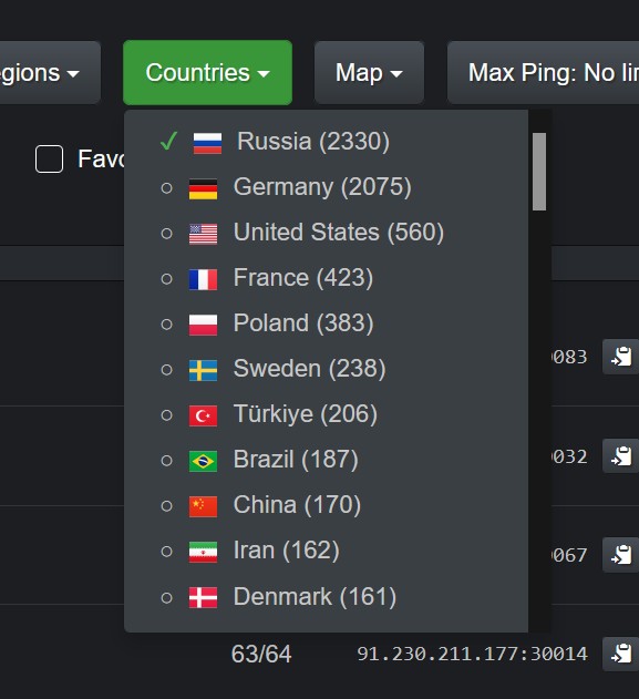 Note how that sorts a lot of servers with the same name (mostly Russian) and... the same IP but with different ports.